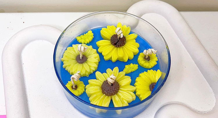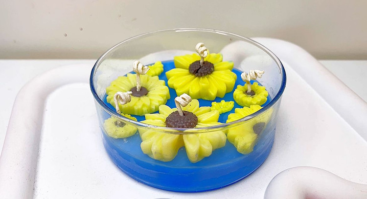 شمع ونگوگ آبی با گل زرد